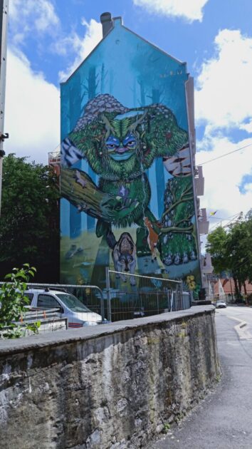 Next stop was the Domkirke, Bergen Cathedral, photo from the outside as I am still objecting to pay money for a short look in a church. The large murals are free to view.