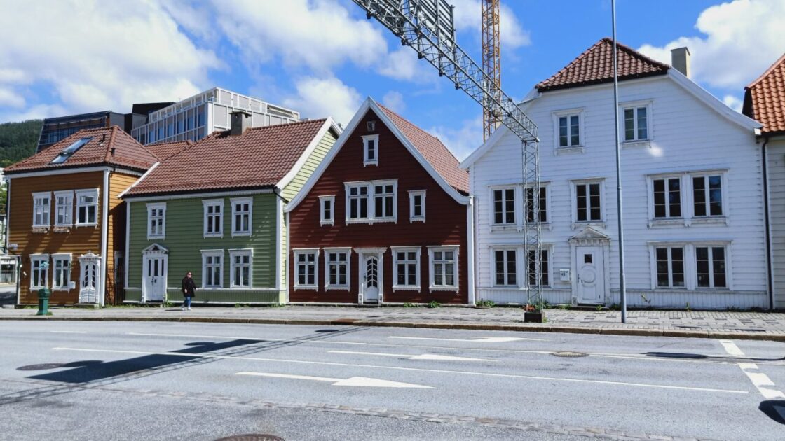 Next stop was the oldest row of houses in Bergen and a nearby cache. Not entirely sure these are them but they look old. They have their own chequered history; some of them were brothels servicing the maritime industry and for 80 years were controlled by the State. If you wait long enough here a ship will come and side back into a wharf to unload hundreds more people. Rough water, big boat and no tug – the captain did an impressive job.
