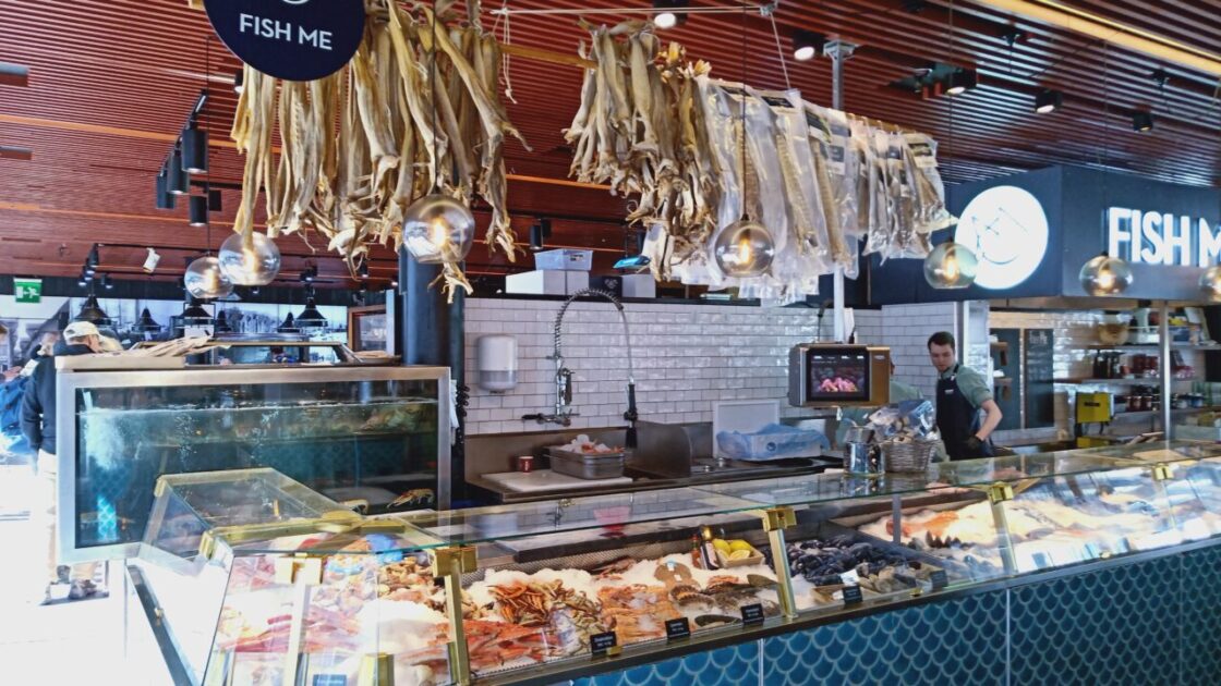 The bonus is that after transport, accommodation and music tickets, they can’t afford to eat anywhere other than McDonalds or Burger King. We decided to try the indoor fish market ‘Mathallen’ for lunch which is in a building on the wharf, has more expensive food and restaurant dining areas. There are lots of fresh fish stalls as well as cheese, bakery and cold meat outlets.