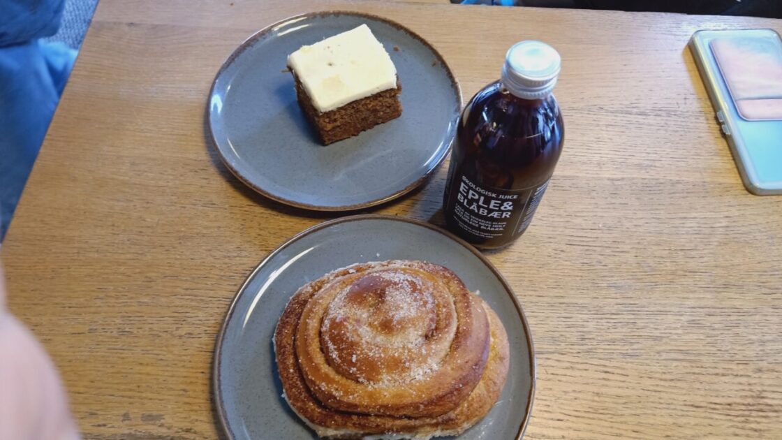 Our reward for all that walking was a carrot cake and a traditional Skillingsbollen – Bergen’s National Pastry for over 500 years. The translation is Shilling Bun, named after the original cost; it costs a lot more now. The sugar, butter, cinnamon and flour concoction actually came from Germany in the 16th century, but Bergen made it their own.