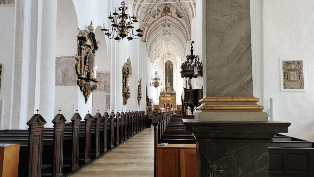 The first geocache was at the Aarhus Cathedral (free entry), it is the longest and tallest cathedral in Denmark. Inside the walls had been painted white so they looked clean and warm compare to churches in France of the same age that are left as natural stone with centuries of candle soot layered on them.