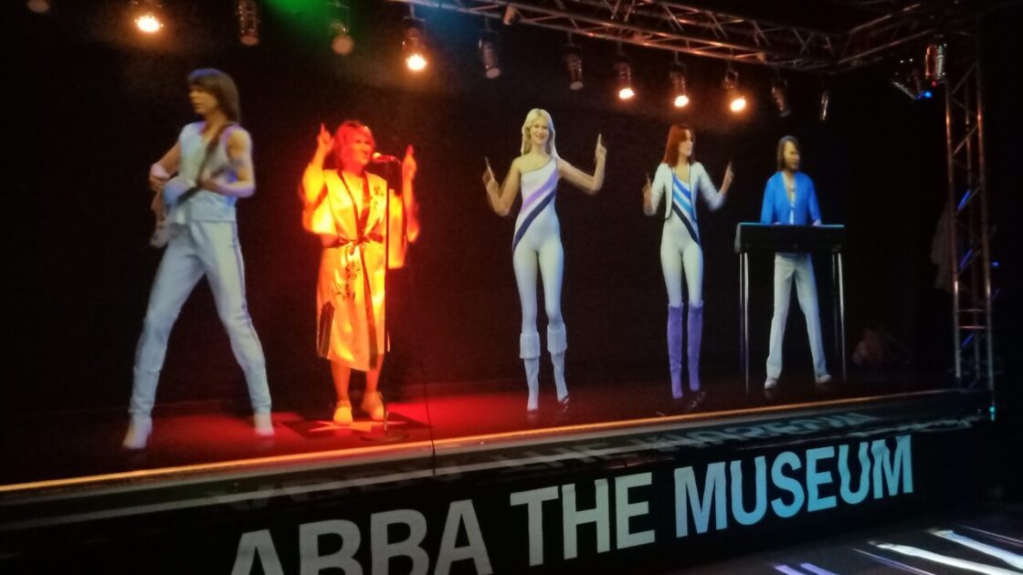 The museum has numerous interactive opportunities where you can take quizzes, mix music, conduct an orchestra, sing in a closed booth, dance in a closed booth or sing and dance on stage in front of others with holograms of ABBA members. We did all the activities except the singing and dancing – the photo above included some random lady.