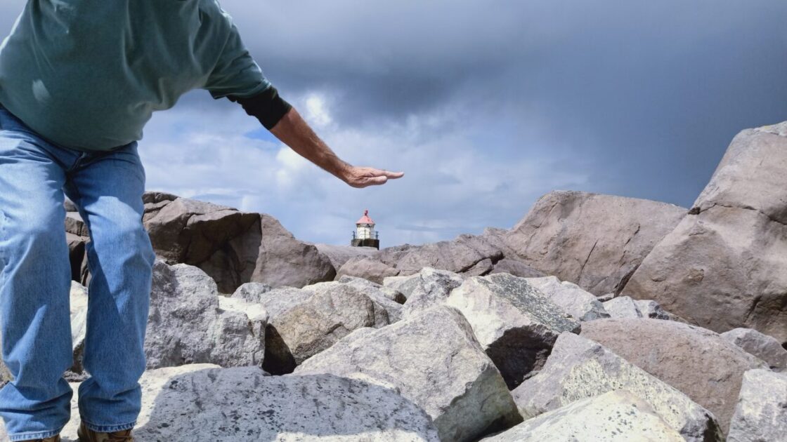 Our next random stop, as my driver tends to do, was the port of Sirevag. The port services the shrimp fishing industry and has big buildings, a big breakwater, a big wharf, no people or cars, another Marie Celeste moment. There is a geocache but a bird decided to lay an egg on it. Not so big is the very very small lighthouse.