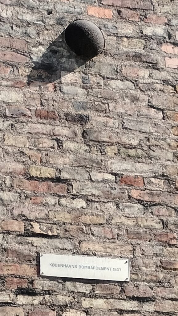 Because Denmark didn’t want to upset trade with either country they stalled making a decision so Britain bombarded the city of Copenhagen destroying buildings and leaving cannonballs embedded in walls.