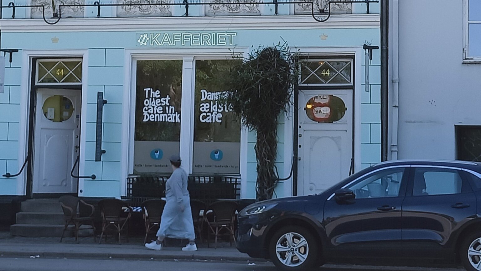 Not on the list was the George Clooney Nespresso coffee house to get some pods for the machine in the apartment. The photo is of the oldest cafe shop in Denmark, but even that claim to fame couldn’t entice Roger to go in and sample some filtered coffee.