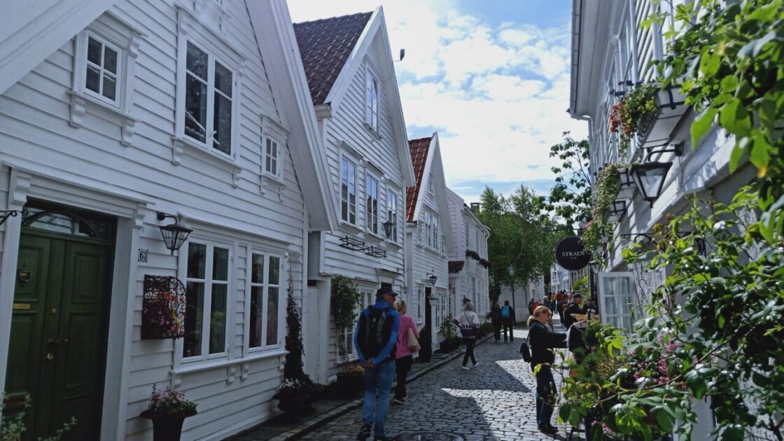 As the sun was shining I thought geocaching in the picturesque streets of 18th century houses might be a nightmare however the tourists off the boats were so pleasant and polite. They didn’t hop in your photo shot; they waited patiently and did the same when they wanted to take a photo. They didn’t linger, they weren’t obtrusive, they were quiet, respectful people. Not too quiet though as I heard a couple discussing the whereabouts of a cache that they couldn’t find (as it was in Roger’s hand). They were German and off the Aida for the morning hunting out caches. We shared the cache, their find count exceeds 15,000, ours 1500, obviously we need to start going on cruises. The photos are of the houses in the historic streets of Gamle Stavanger.