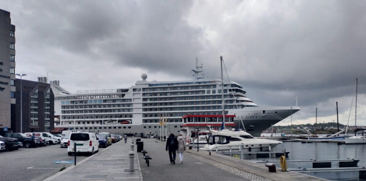 Stavanger has a port, beautiful historic streets, museums, cafes and sea activities, everything that makes an ideal destination for cruise ships. Today there were two cruise liners in port, the Aida Perla 4,350 guests, 900 crew and the smaller but more luxurious Silver Dawn 596 guests, 411 crew. Based on people and staff ratio I like the sound of the second one but not the price.