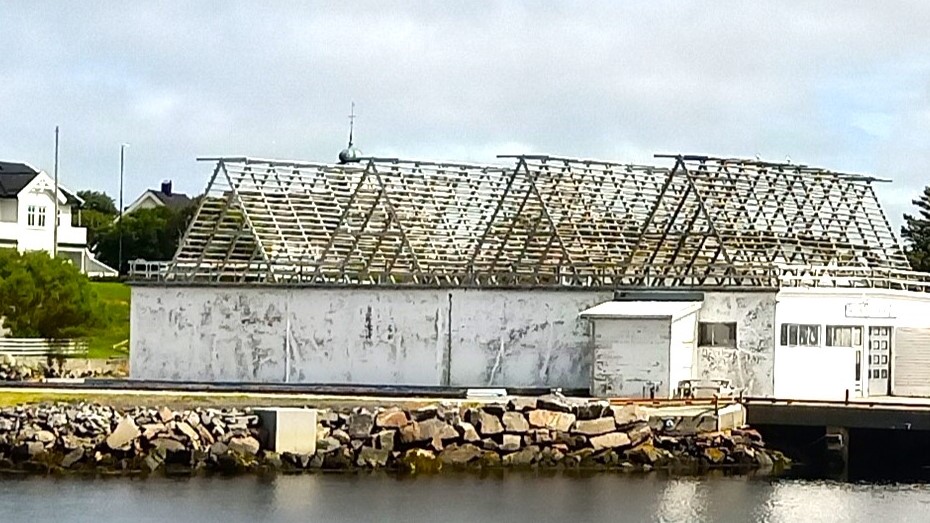 The wooden structures on the top of the building in the photo to the right are cod drying racks.