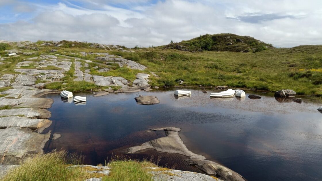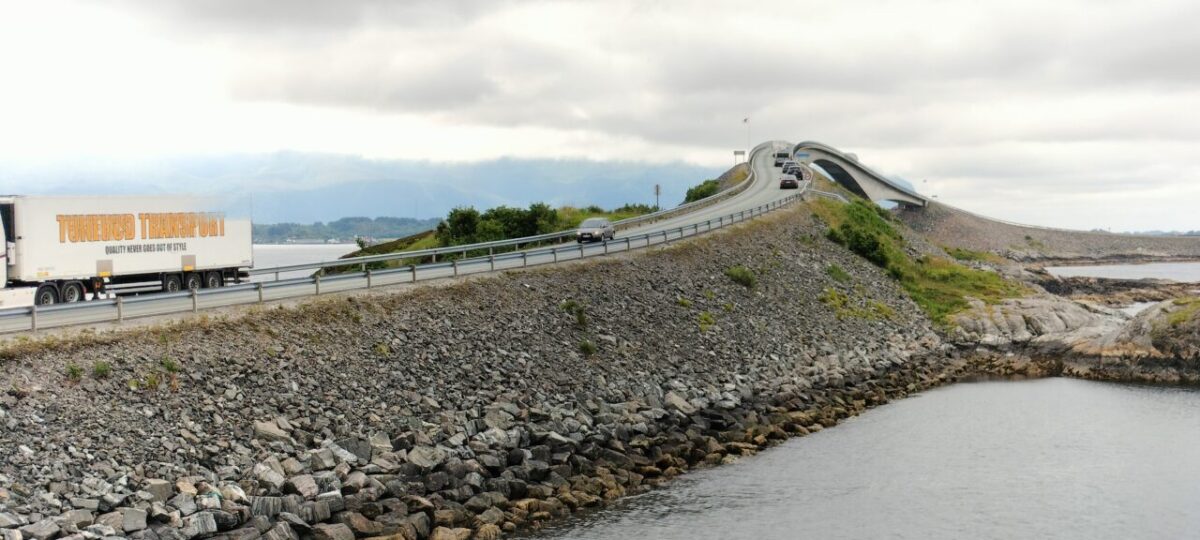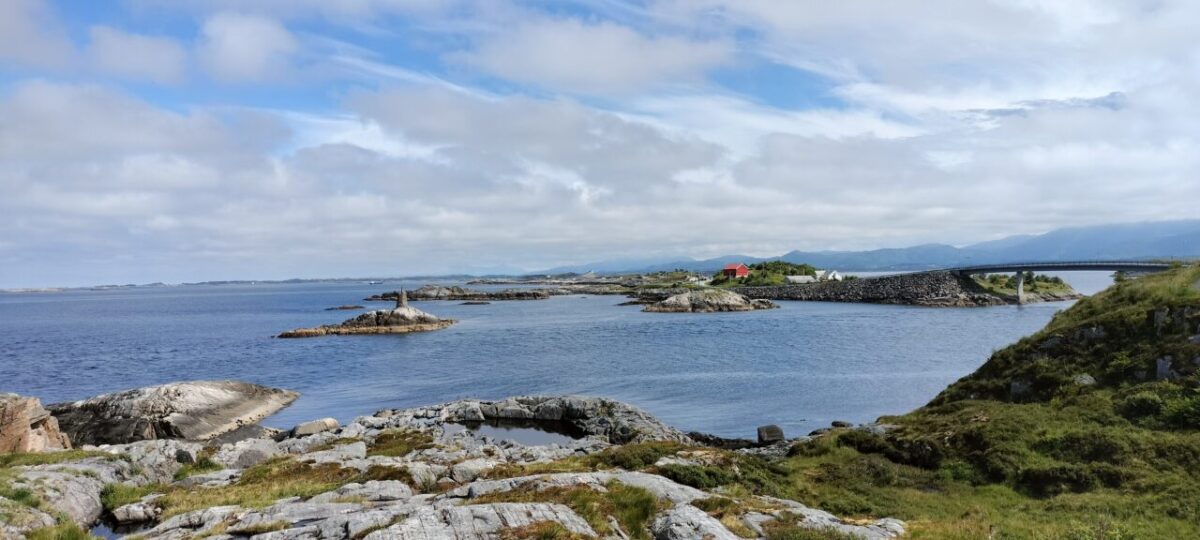 The photos here are from an area near Vevang where you can view the true start of the Atlantic road. The white things in the water are marble pieces made to look like a broken up ancient Greek column, it is some sculptors’ idea of art.