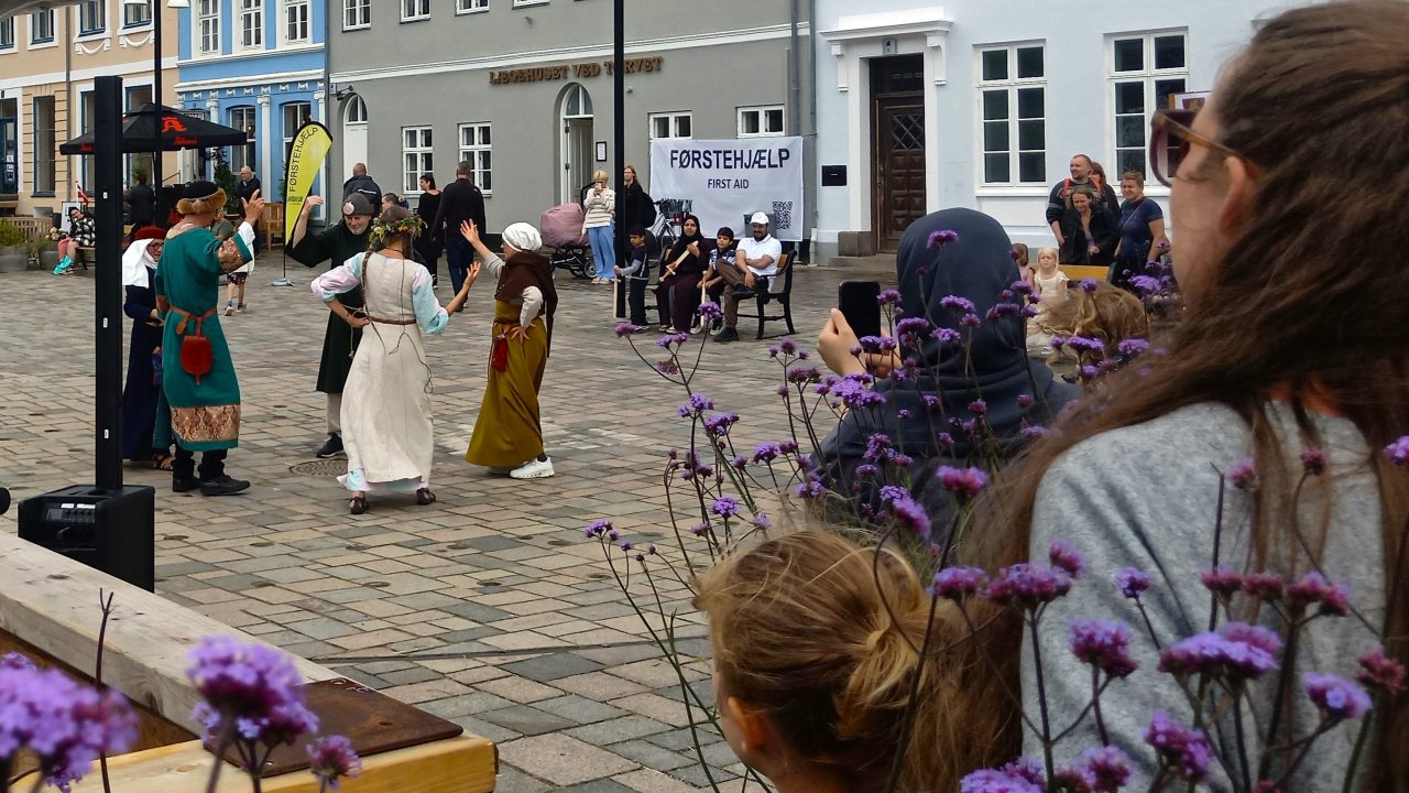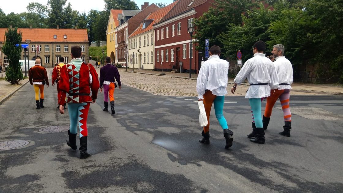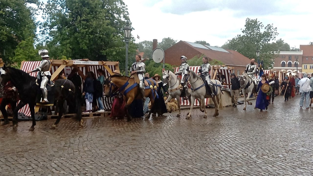 We stopped for lunch in Nyborg, where we stayed on the 10th and 11th of May; a lot had changed since we were there last. They had taken the renovation scaffoldings away from around the castle and set up a whole medieval village for their three day medieval festival. We arrived just in time to see the jousting horses depart, right on time for the sun shower and in plenty of time for the traditional sausage and bun with French mustard. The whole town gets behind the event; there were plenty of stalls, people in period costume and medieval events.