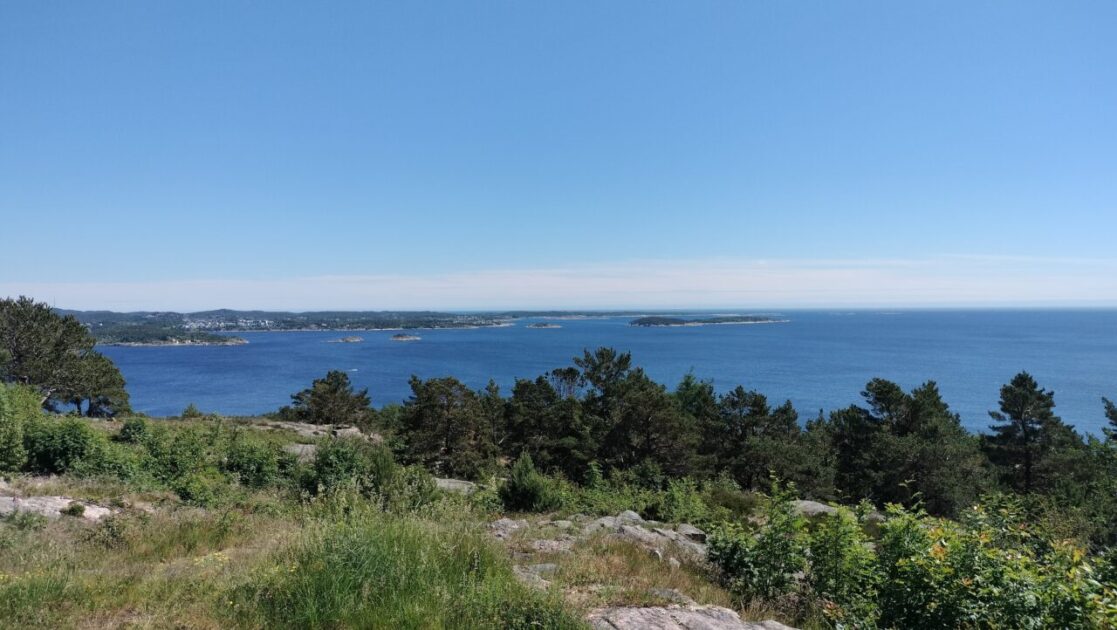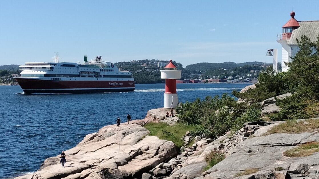 The next geocache was at the lighthouse which is actually at the bottom of the hill, and easily accessible from the top, yeah right, we descended by a number of dodgy paths and very steep stone steps, plus a stiff breeze to cool us down. Two men were having a cup of coffee when we arrived, then cut two branches off a tree and had another cup, its hard work volunteering and directing tourists. We found two young German tourists, or they found us and wanted to know if we spoke German, random question to ask when you are in Norway and see a tourist wearing a New Zealand T-Shirt. Anyway they spoke perfect English and wanted to know if they could mountain bike to the top to see the lighthouse, we tried to tell them the lighthouse was at the bottom, but being young they knew better and rode off in the wrong direction.