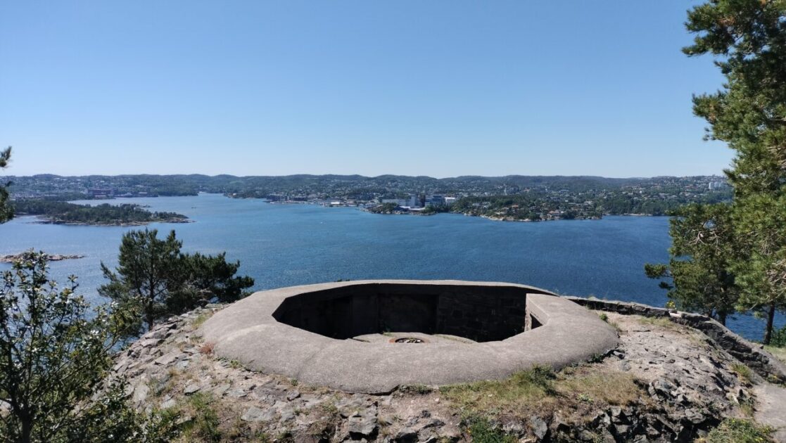 The next three caches were on the island of Odderoya, accessed by a small bridge. Possibly wasn’t the smartest idea straight after lunch as two of the caches required walking up a hill to the old artillery ruins, cruise ship patrons come by bus, smart tourists use e-scooters and leave them up there, we walked. The hill is mainly rock and bush, with the odd road for the few buildings up there. I’m not sure how many people come off the cruise ships to walk up the hill but a few hunt out the geocaches and log that they were off the Aida liner, with a capacity of 6,654 that’s a lot of potential geocachers.