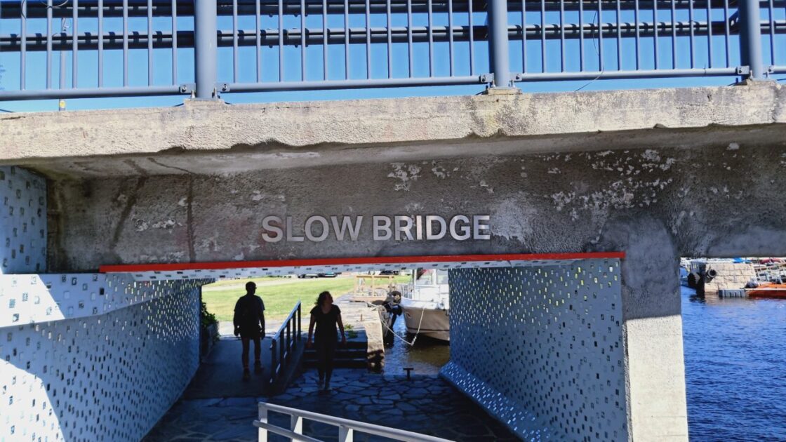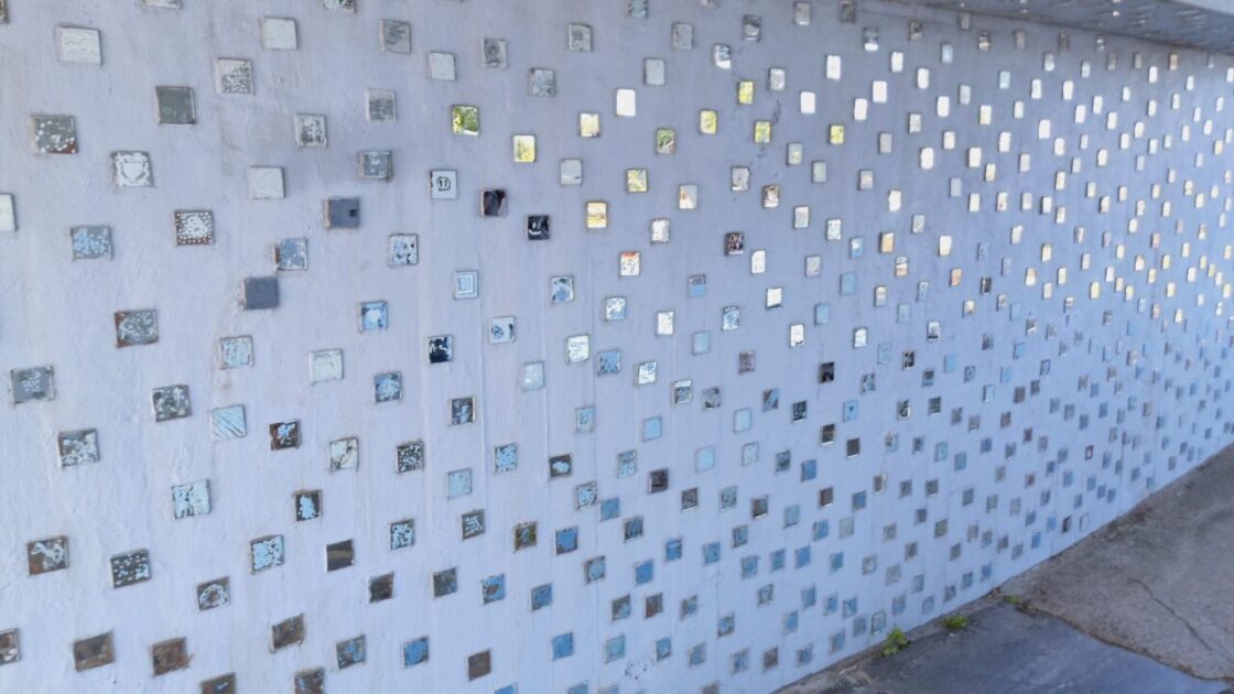 Today’s ABBA tribute is ‘I saw it in the mirror’ (1973) for the little mirror tiles painted by 5300 local children with descriptions or images of their dreams. They have been stuck on the walls of the pedestrian under path, now called ‘Slow Bridge’, near the waterfront of Kristiansand as a community funded arts project.