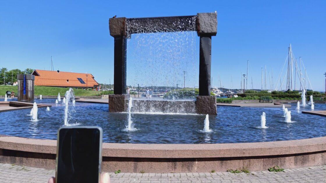 Kristiansand claims to have the second biggest sculpture plant in Norway since Vigeland, so off we went for a geocache. I now know when they say a big sculpture plant it is referring to one overall piece being big, not the whole park. This park had three little statues and this fountain/portal piece, hardly anything to write home about, oh I just did.
