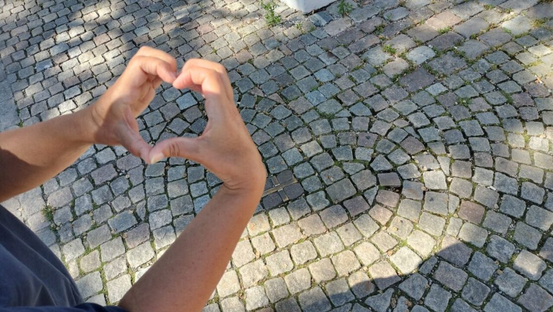Last cache of the day is the heart of the city, the town square is laid with stone cobbles and they incorporated this heart pattern. In the middle of the heart is part of a toboggan because way back the town square was on top of a knoll and children used to toboggan down it. To log the geocache you had to make a heart and take a photo, we took two photos; one has the cathedral we visited afterwards.