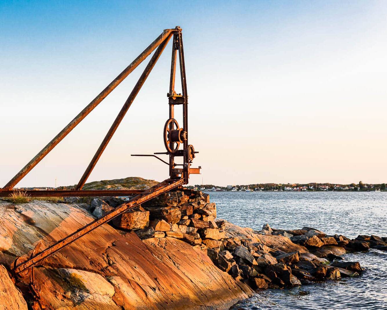 We caught the ferry from Lilla Varholmen to Bjorko and toured the island by car ending up at the northern wharf area where all the pleasure craft berth. There are shops and restaurants, but unfortunately unless you have registered for Swedish parking you can’t really leave your car. To get around this we travelled back down the island, found a community sports ground, and parked in their car park while we went geocaching on the rocks. The photo shows the remains of an old winch for hauling up the herring nets; due to language issues we weren’t even close to finding the cache.