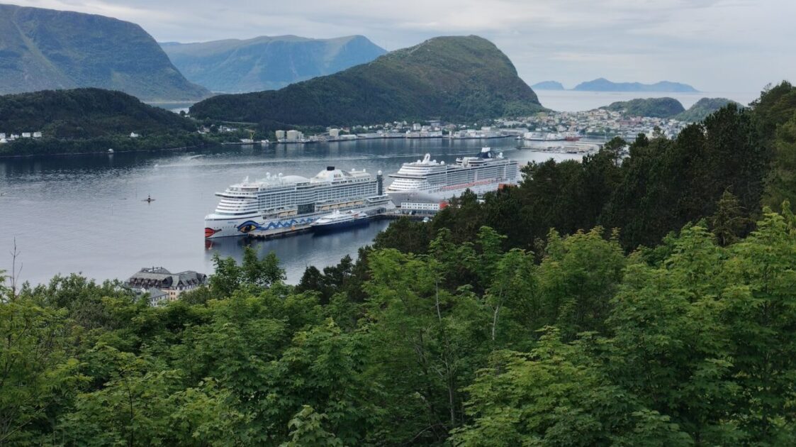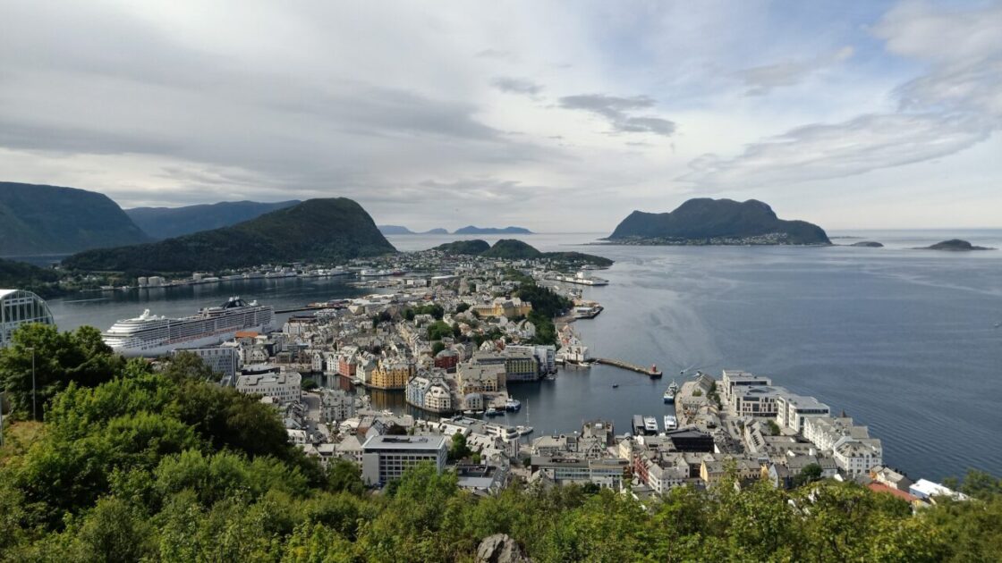 This photo is from the Kniven viewpoint looking down onto Alesund City. You have to jostle for position as there are two cruise ships in port, plus other tourists, a gay pride parade and a children’s festival.