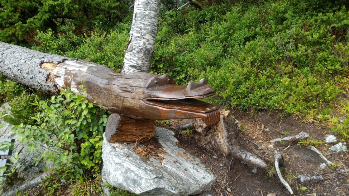 Spotted on the hill - an alligator with a wooden look about him posing for tourists