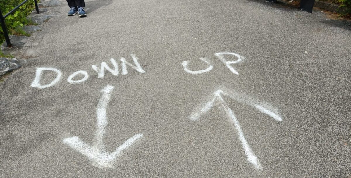 Some nation’s tourists need quite clear instructions when climbing steps, you can hear people asking “are these the stairs to the top?”. The other photo shows one of the cruise ships leaving so we knew it was slightly safer to go into town with 6,000 less Covid spreaders. There were very few hand rails as it was to assist a safe journey down without the coughers and nose blowers constantly touching the rails and reducing my desire to use them.