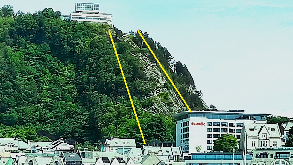 Alesund basically has two main tourist attractions, that’s if you’re not into museums, art galleries, and boat trips. For the uncultured tourist like us you can view some old colourful buildings on the harbour or climb the 418 steps to the Kniven Viewpoint.   The Kniven viewpoint is on Aksla Hill, along with the Fjellstua viewpoint and a few others. As we were staying at the opposite end of the Aksla Hill than the steps we thought it made sense to climb to the summit, walk along the ridge line and then descend by the steps to town, collecting a few geocaches along the way.  We discovered all the geocaches and also discovered that we were in fact staying at the bottom of the hill so we didn’t save any energy by not climbing the steps. For the non-fit you can drive up, catch the Hop-on Hop-off bus or catch the little tourist train, much smarter idea. These photos are views of the Alesund area from the Fjellstua viewpoint.
