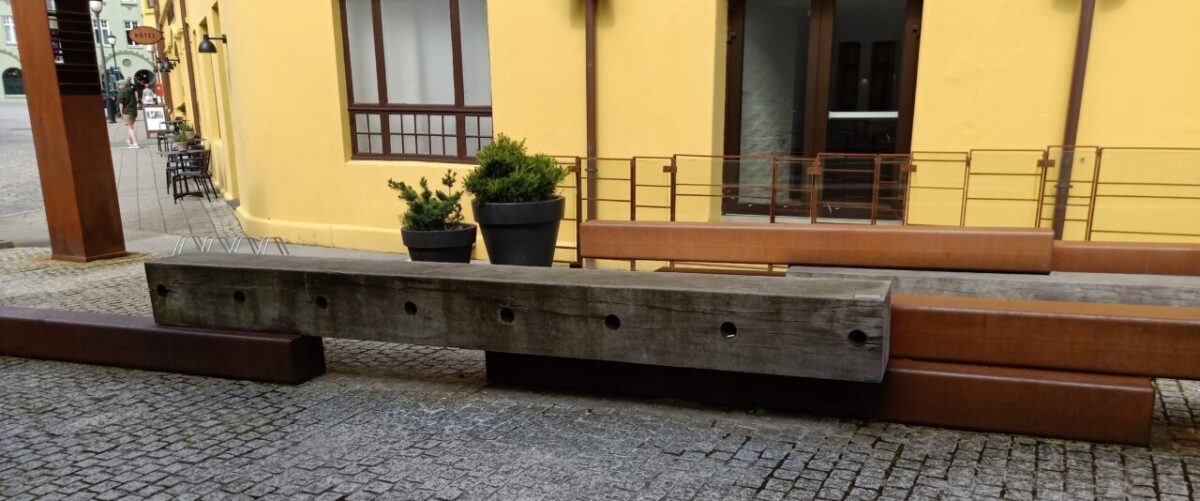 On the subject of misleading information the second photo is of a recycled wooden beam with a plaque to indicate how environmentally conscious they are by turning it into a seat. They don’t draw on the point that they created a carbon footprint because they shipped the beam from Denmark.