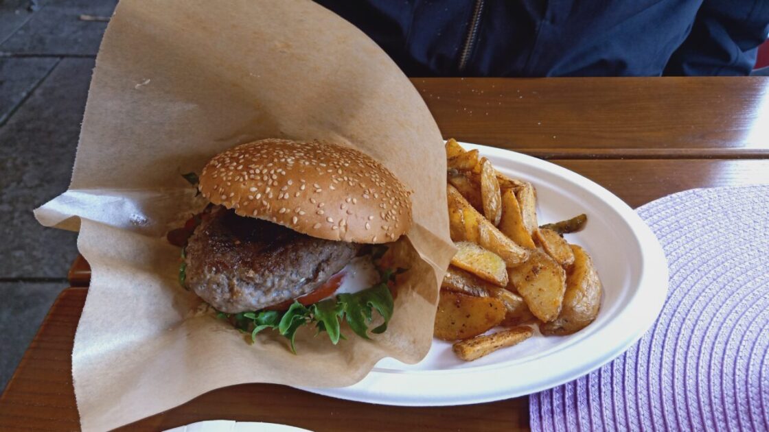 Lunch today was a moose burger NZ$29 and Reindeer Stew NZ$14. The moose burger was lean and tasty, and came with roasted wedges. The reindeer stew was also very nice (much better than the photo reflects) and warming on a cold morning. It came with flatbread and jam.
