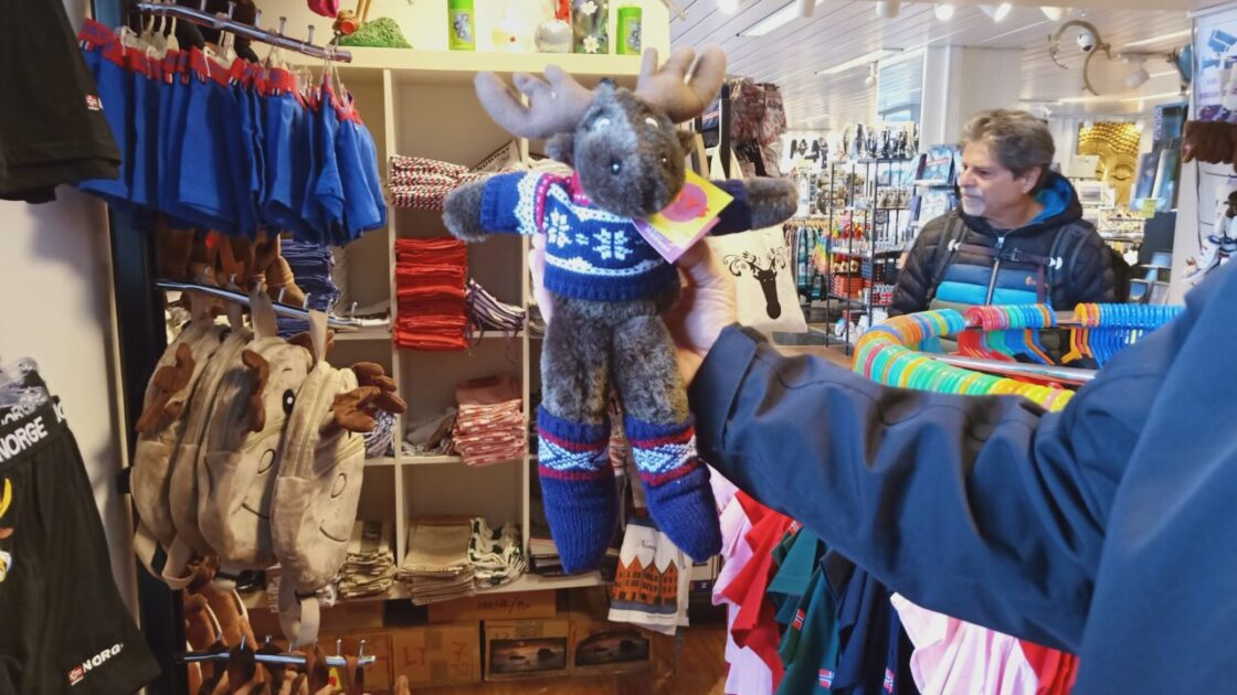 I was taken by the moose soft toy dressed in Dale knitwear, however the price was so scary all I got was a photo of Roger man-handling it.