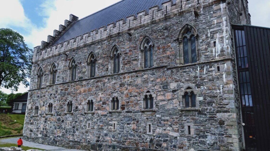 Next stop was the Bergenhus Fortress plus Haakon’s Hall. Parts of the fortress date from the 13th century; it is one of Norway’s oldest and best preserved stone fortresses. We did the free tour of the grounds and walls and found a geocache. Unfortunately not all of the fortress could be viewed today because in two days time Bergenfest will take place, a large music concert that will take up most of the fortress grounds. Something to miss as we know nobody singing, except for Stormzy, whose music genre doesn’t rate with us.