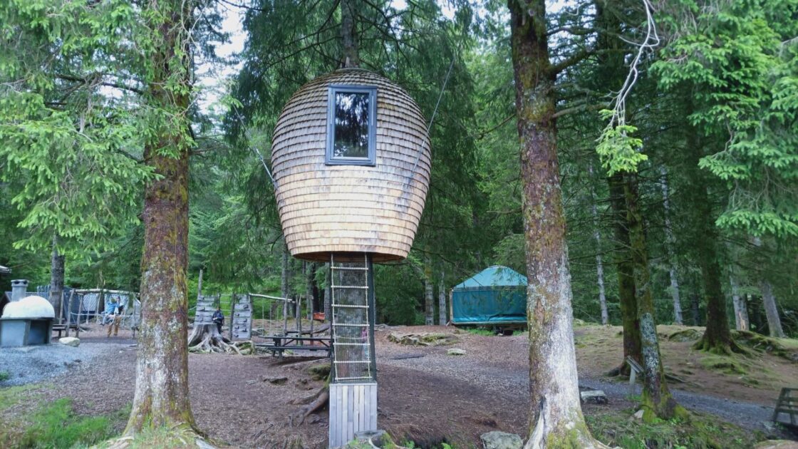 This nut looking tree house is for rent as accommodation on a nightly basis. I’m not sure why anybody would, as its right in the middle of a tourist attraction and even worse, a children’s playground.