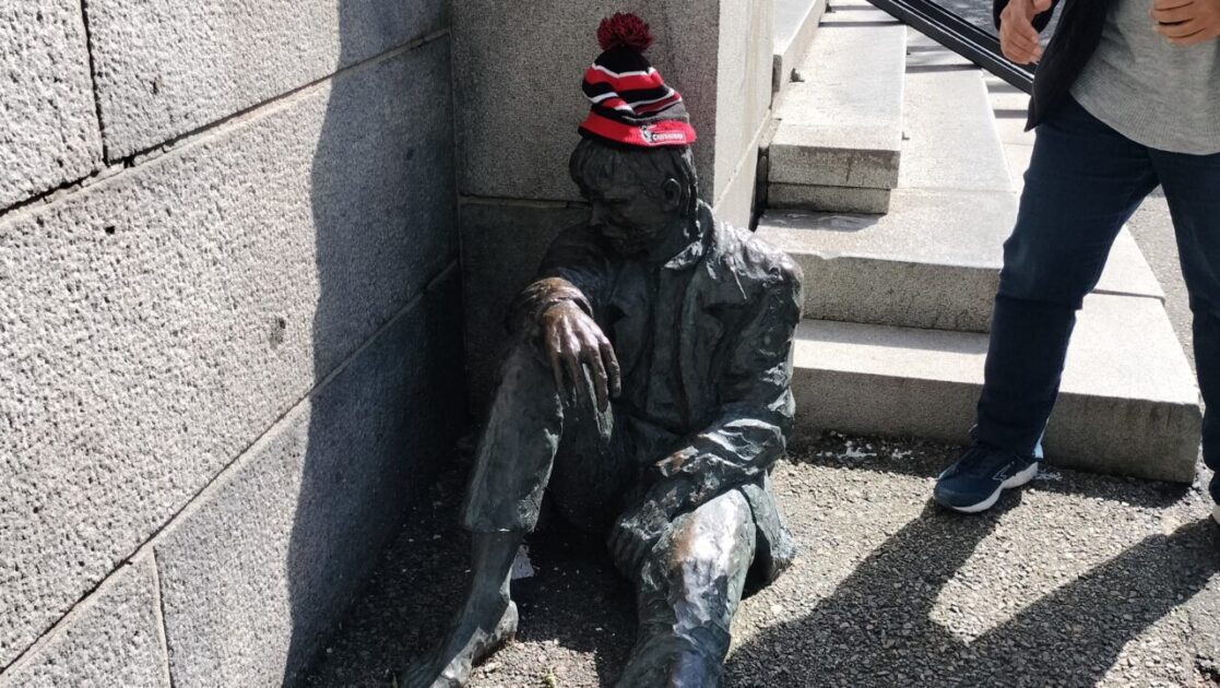 McDonalds in a 1710 building, a homeless guy statue with a crusader beanie (for a geocache), a moose post-burger extraction, a forklift and the view from the tram proof that the sun was shining in Bergen today and the council workers had removed all the spring flowers.