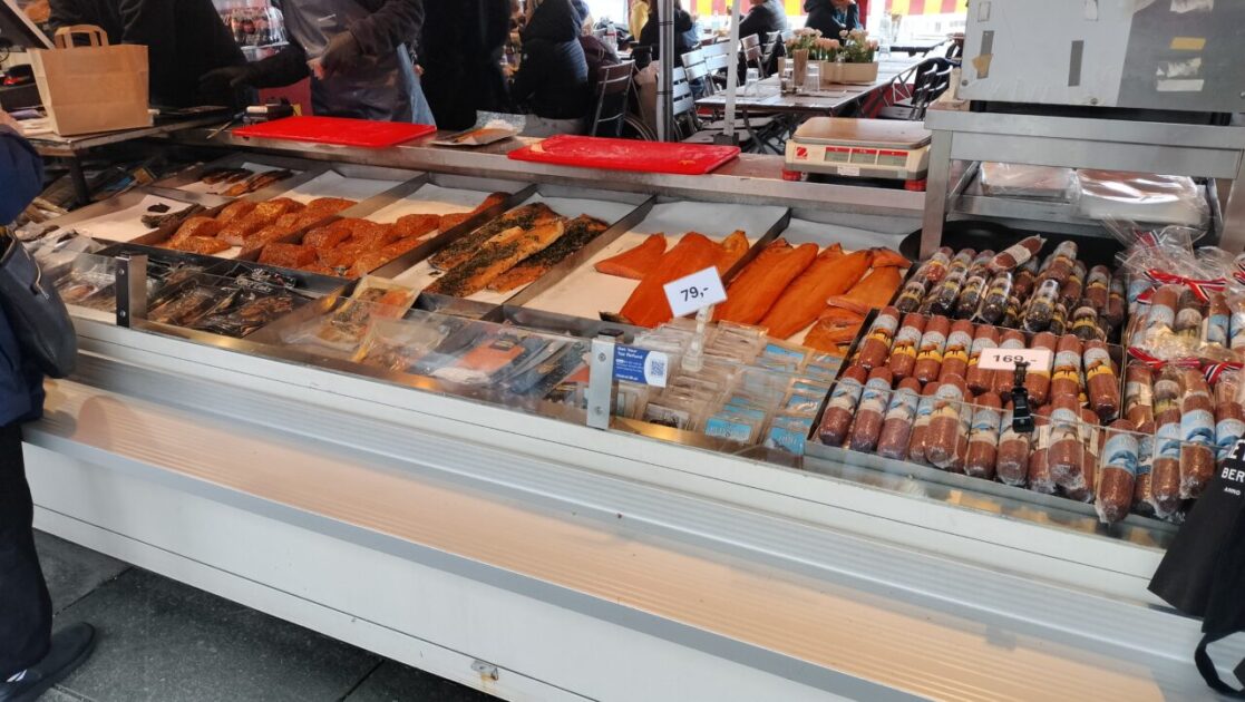 Our first financial outlay was at the Torget outdoor fish market. Bergen has two fish markets, the other being indoors. The red-tented stalls sell fresh and cooked fish of varying sorts and provide seated dining undercover at the back of the stall. There was so much to chose from but unfortunately I couldn’t justify NZ$50 for a Salmon kebab or Salmon two-ways open sandwich. I also wasn’t ethically drawn to the whale meat, but I was tempted by the non-fish products on offer.