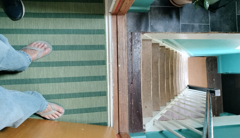 [Ed – There are two flights of steps that are so steep they might as well be a ladder. We had to stand on the top step and reach up to unlock the apartment.]
